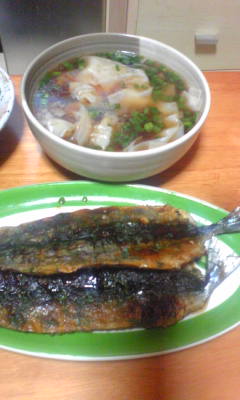 今日はサンマと餃子が冷凍庫にあったのでおかずにしてみました。