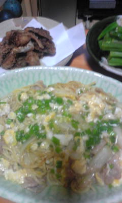あんかけ焼きそばのほかにはオクラの茹でたのにドレッシングをかけたのと