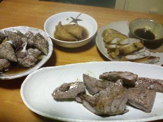 前日の残りの灯台つぶ貝を酒、しょう油、味醂で酒蒸しのちょっと強めに火を入れる感じにして