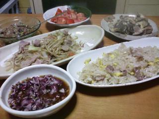 あとは、余ったオクラにポン酢をかけた物と余ったお肉を炒めた物。
