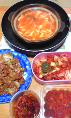 韓国料理で真っ赤な夕飯
