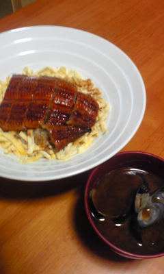 その上にうなぎの蒲焼をカットしてのせたら出来上がり