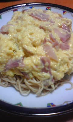 あとは麺のうえにスクランブルエッグ風をのせて完成!